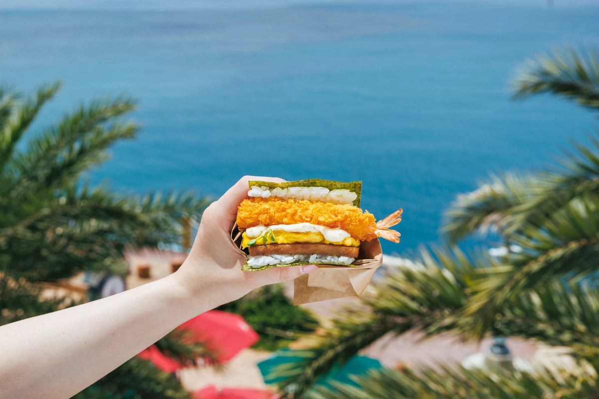 - ★ 沖縄のソウルフード・ポークたまごおにぎりの出来立てが味わえる人気店。沖縄初のオーダーを受けてから手づくりするポークたまごおにぎり専門店で、店舗ごとの限定メニューも。北谷アメリカンビレッジ店では、「エビマヨ」「マグロ照り焼き」「チーズビーフ」を提供しています。なかでも「チーズビーフ」は、薄切りの牛肉と玉ねぎを塩・胡椒で味付けし、たっぷりのチェダーチーズと食べるシンプルながら、旨みが凝縮した一品です