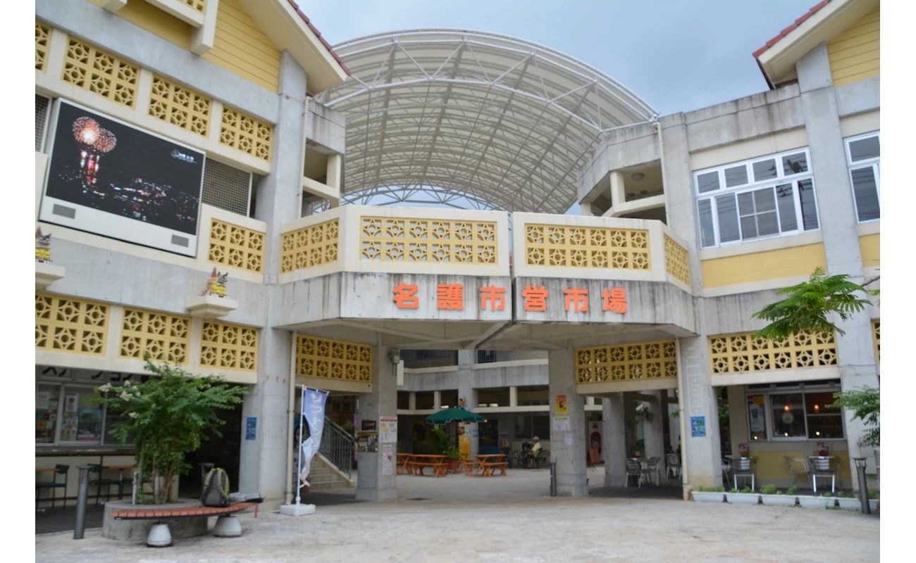 名護市の中心部にある市場。1階は鮮魚店や精肉店、惣菜店などが並び、地元の新鮮な食材や沖縄ならではの食材を購入できる。2階には食堂や居酒屋、カフェ、セレクトショップがあり、地元の味や名護市の特産品・工芸品を楽しめるスポットとして親しまれている。