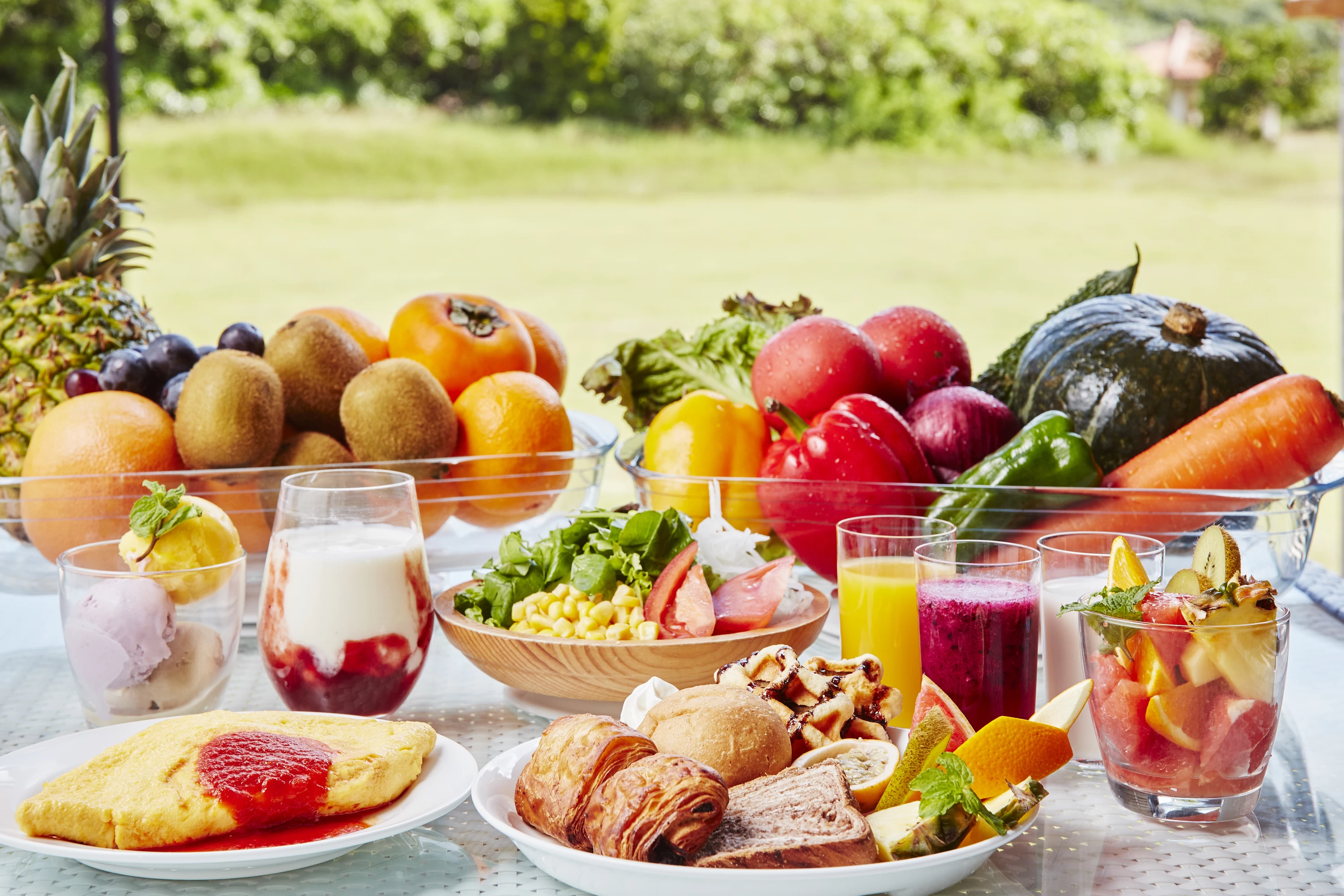 - ★ 島の食材を使った季節感あふれる朝食が味わえるのがこちら。島の郷土料理から、和・洋食まで多彩なメニューのブッフェをお楽しみいただけます。シェフがその場で調理するライブキッチンなどもありますよ