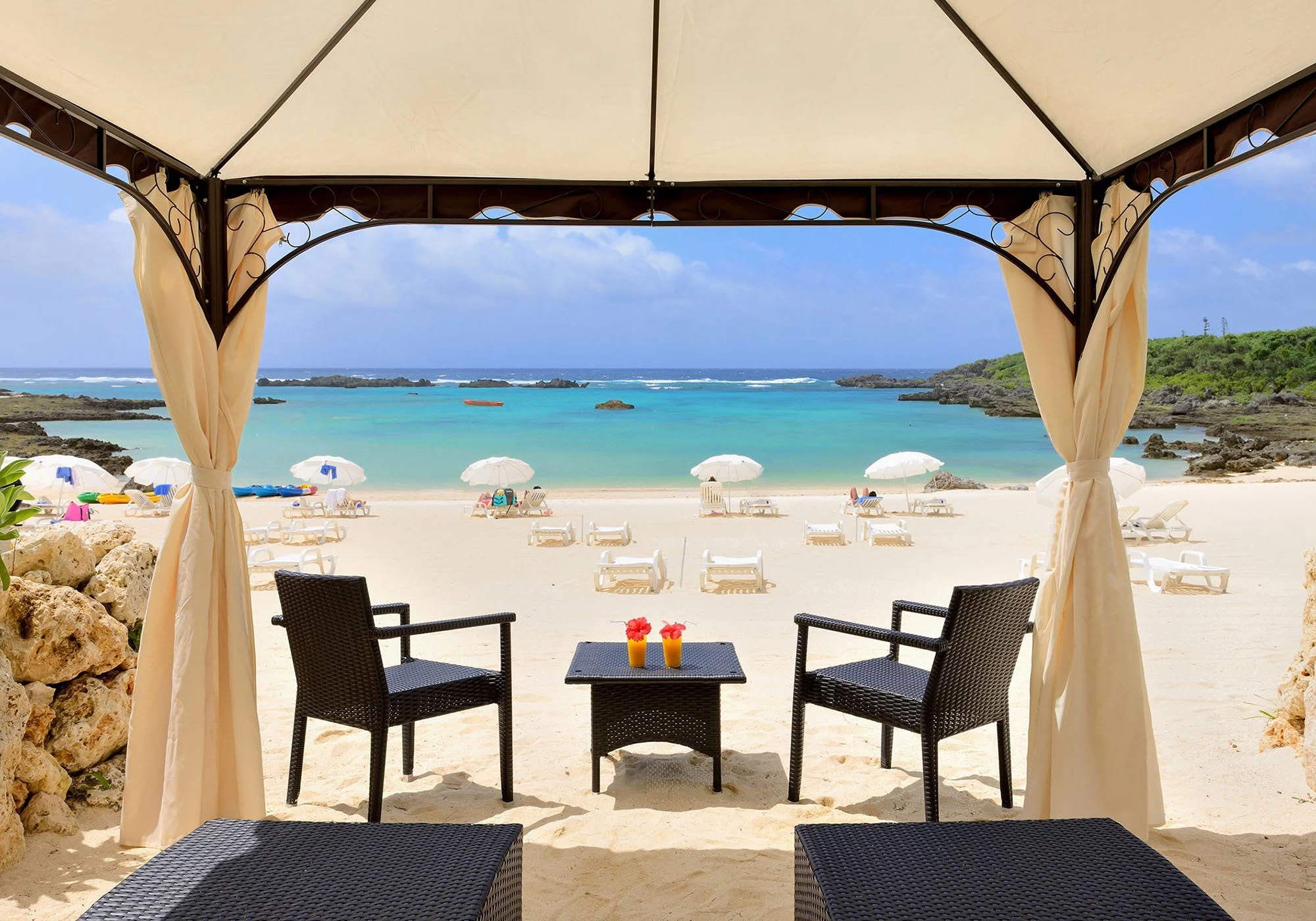 - ★ また、一棟ずつ琉球石灰岩でスペースが区切られたプライベート空間のテント式のカバナがあるので、そちらで宮古島特有のやわらかな風と心地よい波の音に包まれて、のんびり過ごすのもいいですね