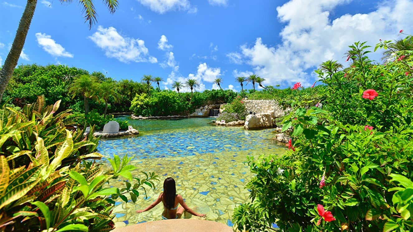 日本最南端・最西端の天然温泉。緑と花々に囲まれた露天風呂や、海を望む絶景の展望風呂で心身ともにリフレッシュできる。水着で楽しめる温かいジャングルプールは、ご家族やカップルにも人気。