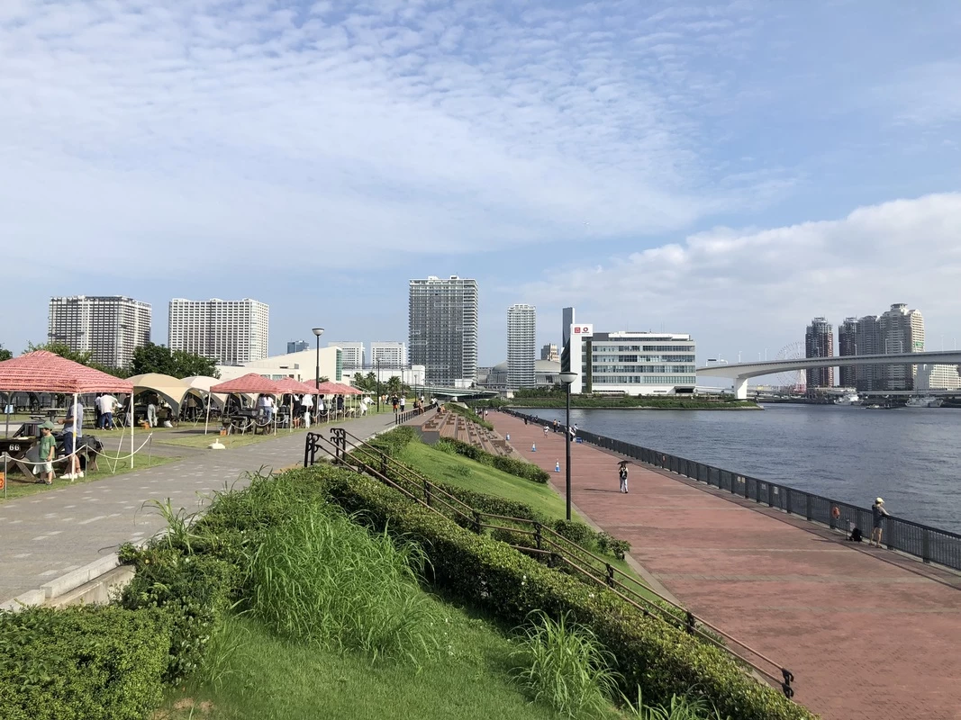 豊洲エリアの埠頭全体を囲むように整備された、区内最大級の広さを誇るウォーターフロントパーク。東京湾やレインボーブリッジを望む絶景をはじめ、散歩やランニング、釣り、バーベキュー、豊富な遊具エリアまで揃い、老若男女問わず多彩な過ごし方ができるスポット。