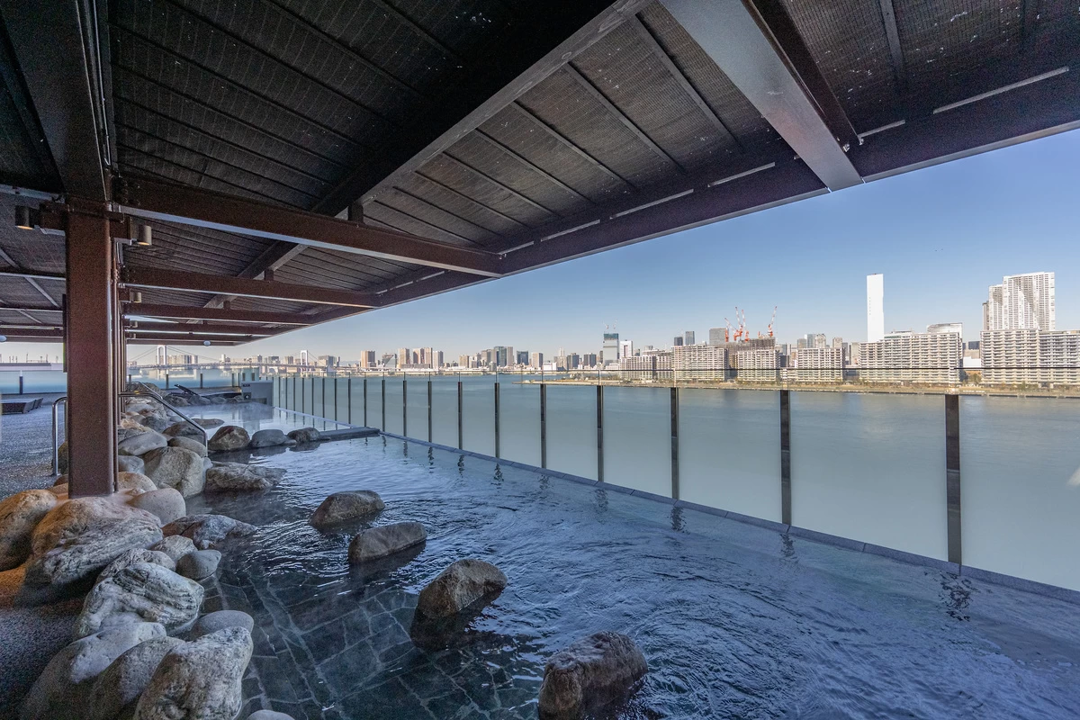 豊洲エリア屈指の、24時間営業の大型温浴施設。箱根・湯河原から毎日運ばれる天然温泉をはじめ、露天風呂・大浴場・サウナ・岩盤浴、ウォーターフロントの景色を360度パノラマで一望できる展望足湯庭園など、癒やしの空間が広がっている。