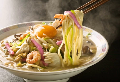 長崎出身の創業者が大阪に店を構えて50余年、郷土の「長崎ちゃんぽん」「長崎皿うどん」の味を広め続ける店。美味しさの秘密は、こだわりの麺・素材・スープ。麺は自社工場で作り、具材には国産野菜や魚介・豚肉などの厳選素材を使用。スープは香味野菜や豚げんこつ、鶏ガラの髄から出たコラーゲンと白湯スープを使って仕上げている。