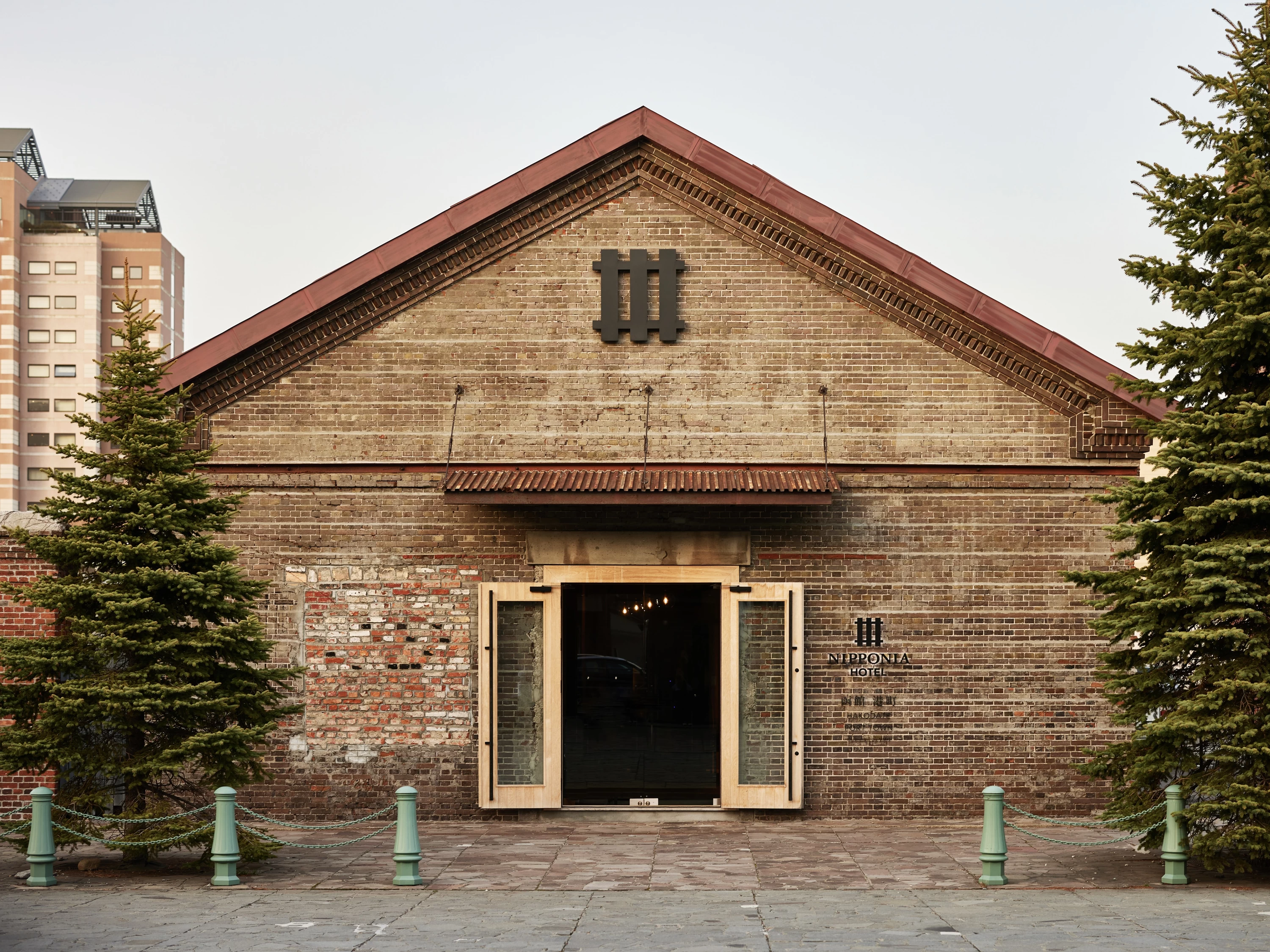 - ★ 函館のシンボルである赤レンガ倉庫群。その一角の活用されてこなかった倉庫建築を全9室の宿泊施設へ改修したのが「NIPPONIA HOTEL 函館 港町」です。赤レンガのデザインと、北欧のシンプルで温かみある雰囲気をイメージしたデザインが調和することで、ほかでは体験できない贅沢な空間を生み出しています