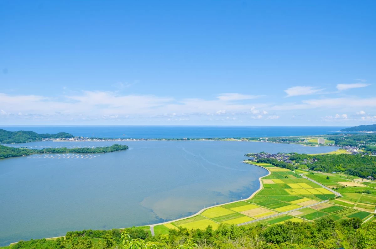 - ★ 久美浜湾の南東部に位置する標高約191.7mのかぶと山は、火山岩層からなる孤立丘です。山頂の「かぶと山山頂展望台」は府内産の杉材を使った自然と調和するデザインで、久美浜湾、日本海、小天橋を一望できる絶景スポットです