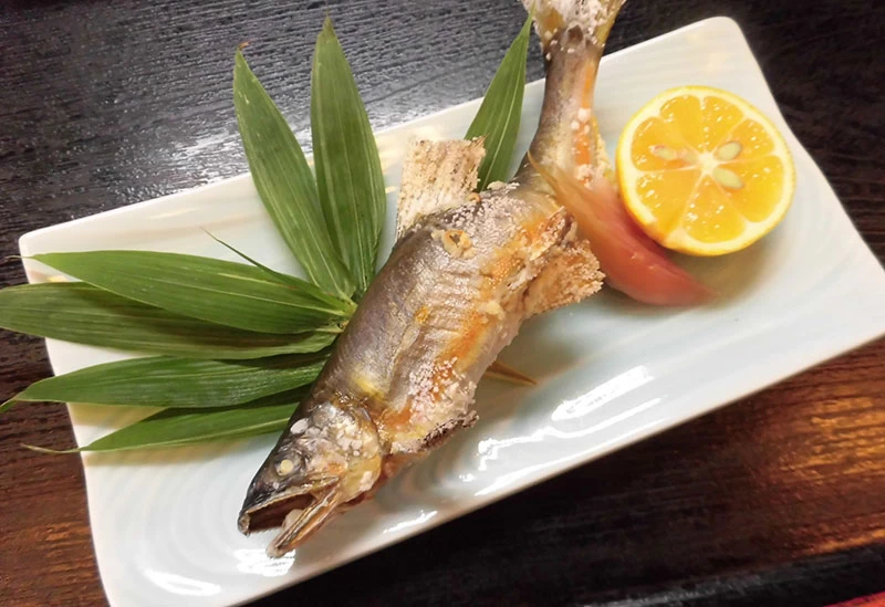 高知西南交通の四万十市役所前停留所から徒歩約4分の場所で営む「厨房わかまつ」は、四万十らしい風情ある古民家風の食事処。高知のご当地グルメといえばカツオのたたきが有名だが、四万十を訪れたなら「中村の塩たたき」を堪能しよう。自慢の川エビを使った「川えびの唐揚げ」もぜひ味わいたい郷土料理だ。