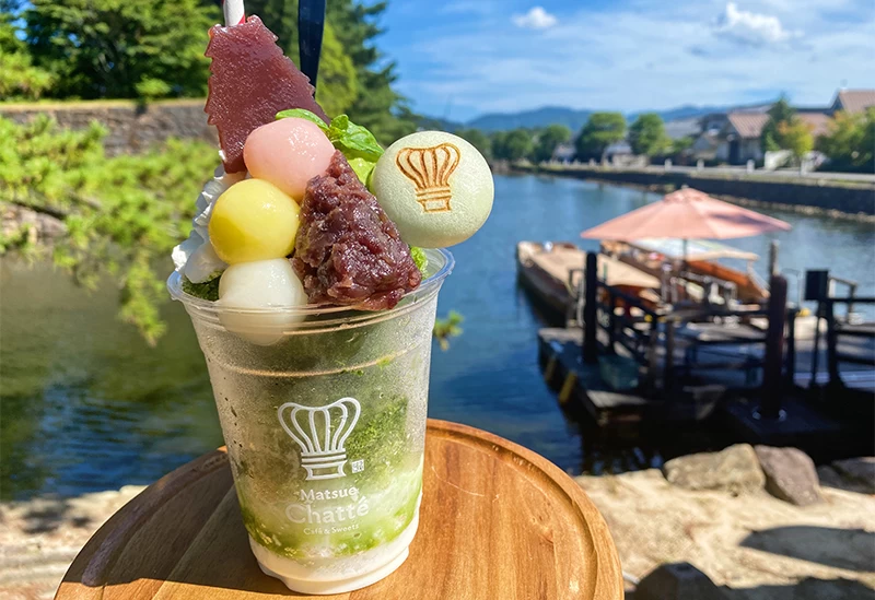 松江城の程近くに佇む、島根県産の野菜や果物を使ったドリンクとスイーツを提供するテイクアウトカフェ。 「お抹茶ラテ」「ほうじ茶ラテ」のほか、冬は「神在 出雲ぜんざい」、夏にはかき氷など季節のメニューが豊富に揃う。地元の錦味噌を使用した「だし旨 宍道湖しじみ汁」は、カツオとアゴダシの2種のダシから選べるのが嬉しい。