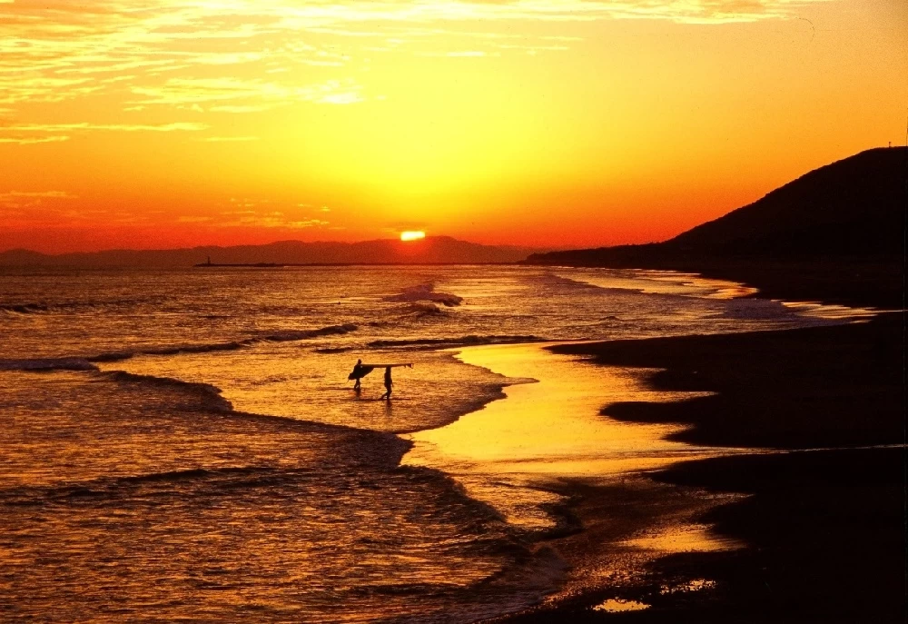- ★ 全国屈指のサーフポイントとしてサーファーが集うロングビーチ。道路沿いには椰子の木が並び、ビーチにはサーフボードを手にしたサーファーたちが行き交います。日本にいながら、さながらアメリカ西海岸のような雰囲気を満喫できますよ