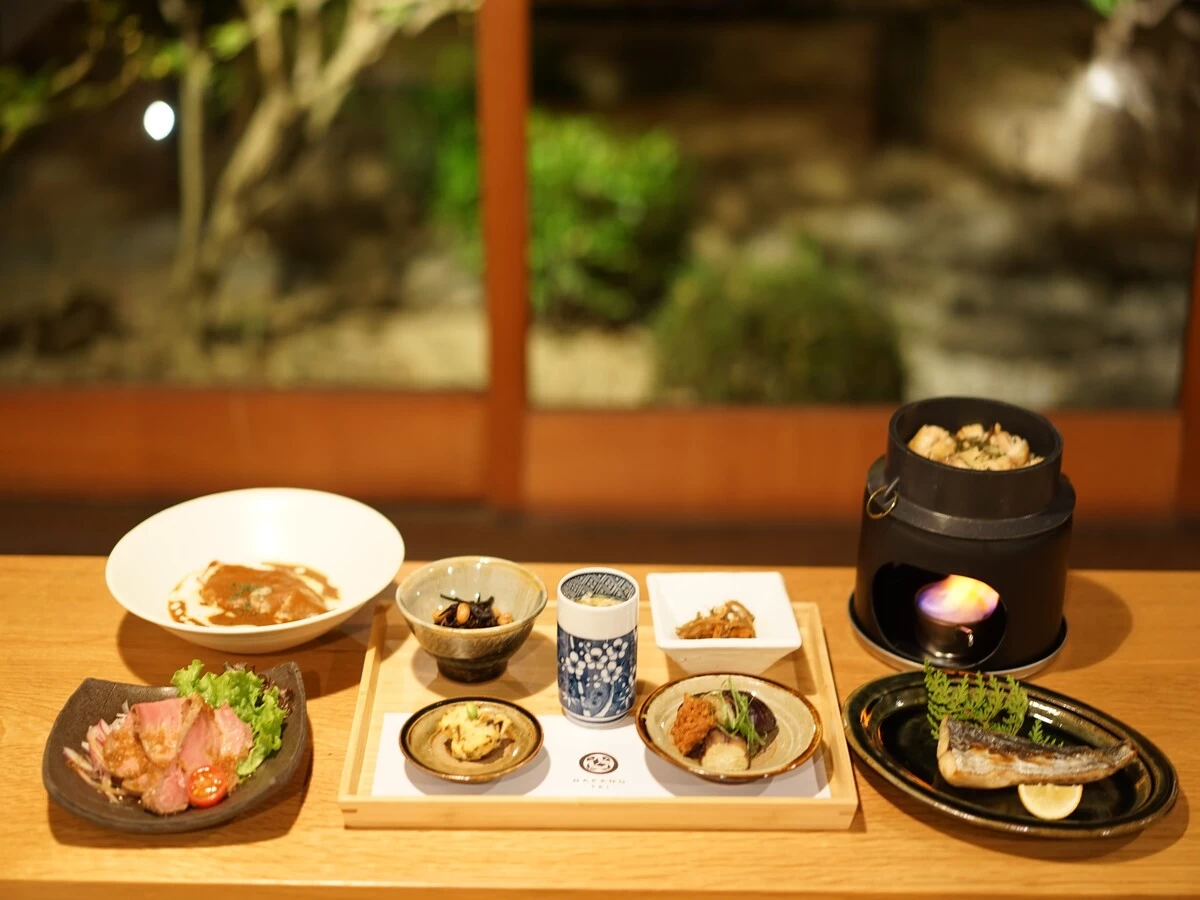 - ★ オリジナルのダシで仕込んだ数々のおばんざいや、旬の焼き魚、自家製ローストビーフなど、ひと手間かけた献立ばかり! 季節ごとに彩る庭の雰囲気も味わいながら、特別な時間をお過ごしください