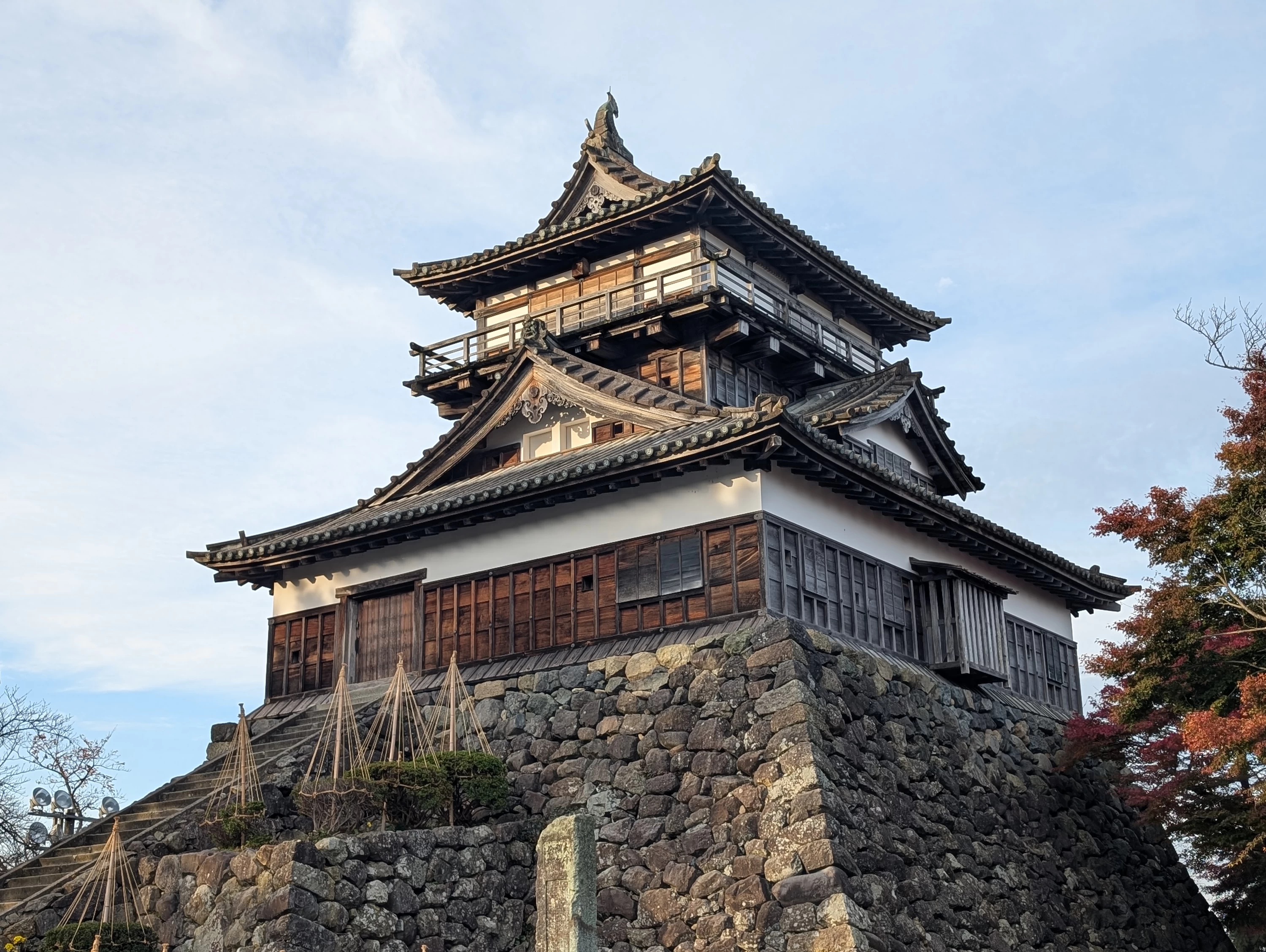丸岡城(別名:霞ヶ城)は1576年に柴田勝家の甥、柴田勝豊によって築かれた平山城。北陸地方で唯一現存する天守があり、国の重要文化財に指定されている。福井県坂井市丸岡町に位置し、標高約17mの小高い丘に築かれた。戦国時代の一向一揆への備えとして築城され、その後江戸時代には丸岡藩の藩庁として機能した。