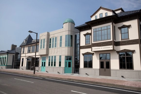 - ★ 建物の三角屋根が印象的。夜にはライトアップされて美しく、フォトスポットとしても人気です