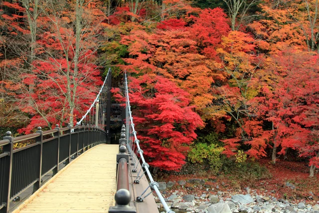 - ★ 紅葉の時期は、紅葉と吊り橋の鮮やかな景色が楽しめたり、夜になるとライトアップされたりと、那須塩原観光に外せないスポットです