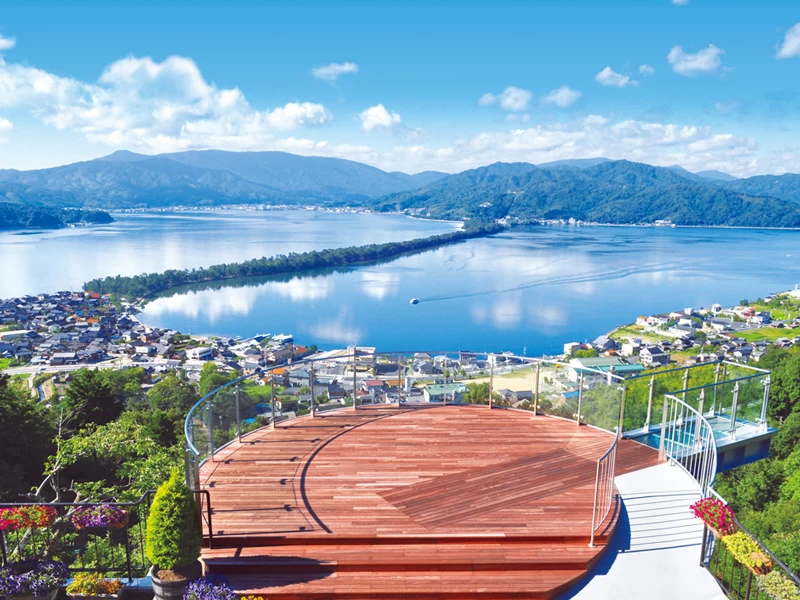- ★ 成相山(なりあいさん)中腹に位置し、天橋立を北側から一望できる展望スポットのある公園。ここからの眺めは、天橋立が右肩上がりで勢いよく天へと昇る龍の姿に見えることから「昇龍観」と呼ばれています