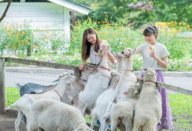 - ★ 春は桜、夏は新緑、秋は紅葉と、季節によって色とりどりに表情を変える場内には、写真映えスポットやスイーツも充実。また、羊やヤギとの散歩など、日常では体験できないようなプログラムやイベントを通して、さまざまな動物と触れ合えますよ