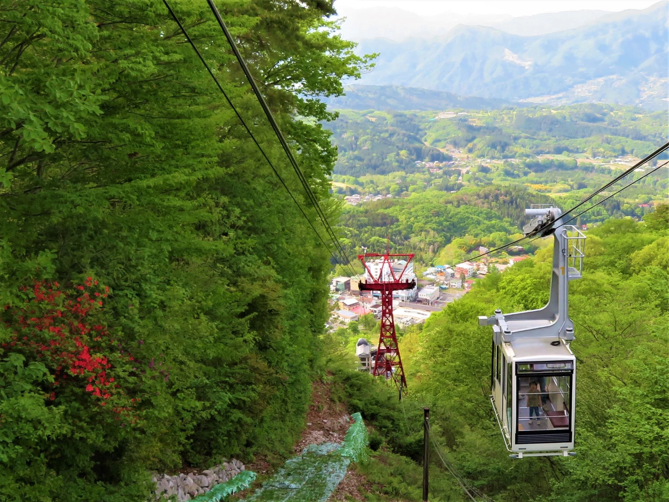 - ★ 発着駅の不如帰(ほととぎす)駅から見晴(みはらし)駅まで、ゴンドラからは眼下に広がる伊香保温泉街や、遠くには上州の山々を一望することができます。ゆっくり景色を楽しみましょう