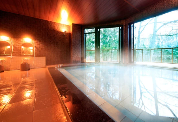 - ★ 軽井沢の豊かな自然のなかで、心も身体も美しくなる非日常体験ができるこちらの宿。広い湯船に浸かれる大浴場では、 軽井沢の自然を眺めつつ、美肌の湯ともいわれるアルカリ性単純温泉が楽しめます。手足を伸ばしてゆっくり体を温め、日頃の疲れを癒やしましょう