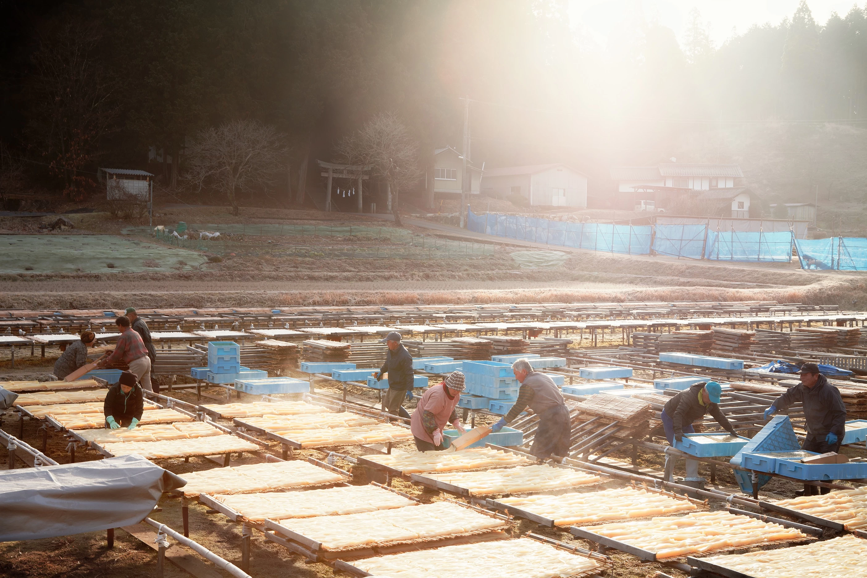 - ★ なぜ“海なし県”の岐阜県で、海藻である天草(てんぐさ)を材料とする寒天を作れるのか不思議に思うかもしれません。でも山岡の細寒天の全国シェアは、なんと8割以上! 降雨降雪が少なく、昼夜の寒暖差の大きな山岡町は、寒天を製造するのに適しているのです