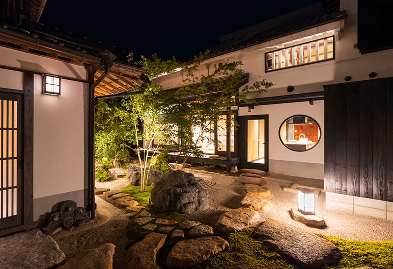 「備中松山城」の城下町として栄え、今も多くの歴史的な建造物が残る、岡山県高梁市に佇む一棟貸しの宿。戦国時代から江戸時代にかけて活躍した武将・小堀遠州が形成した、茶の湯の美意識“綺麗さび”をコンセプトにした世界観を造り上げている。伝統を重んじながらも床暖房などの設備が整い、快適に過ごせるのも魅力。