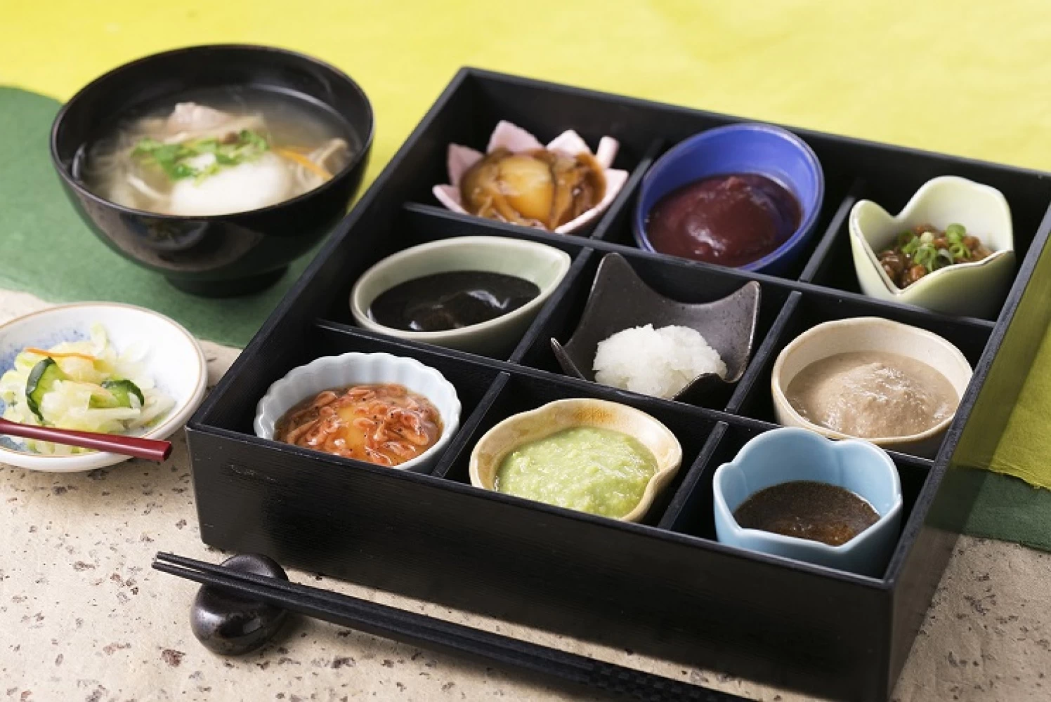 - ★ 「ひと口もち膳」は9種類のお餅を楽しむことができるお膳で、どれも格別のおいしさ。たくさんの種類を一度に食べられとあって、全国から餅好きが集まります