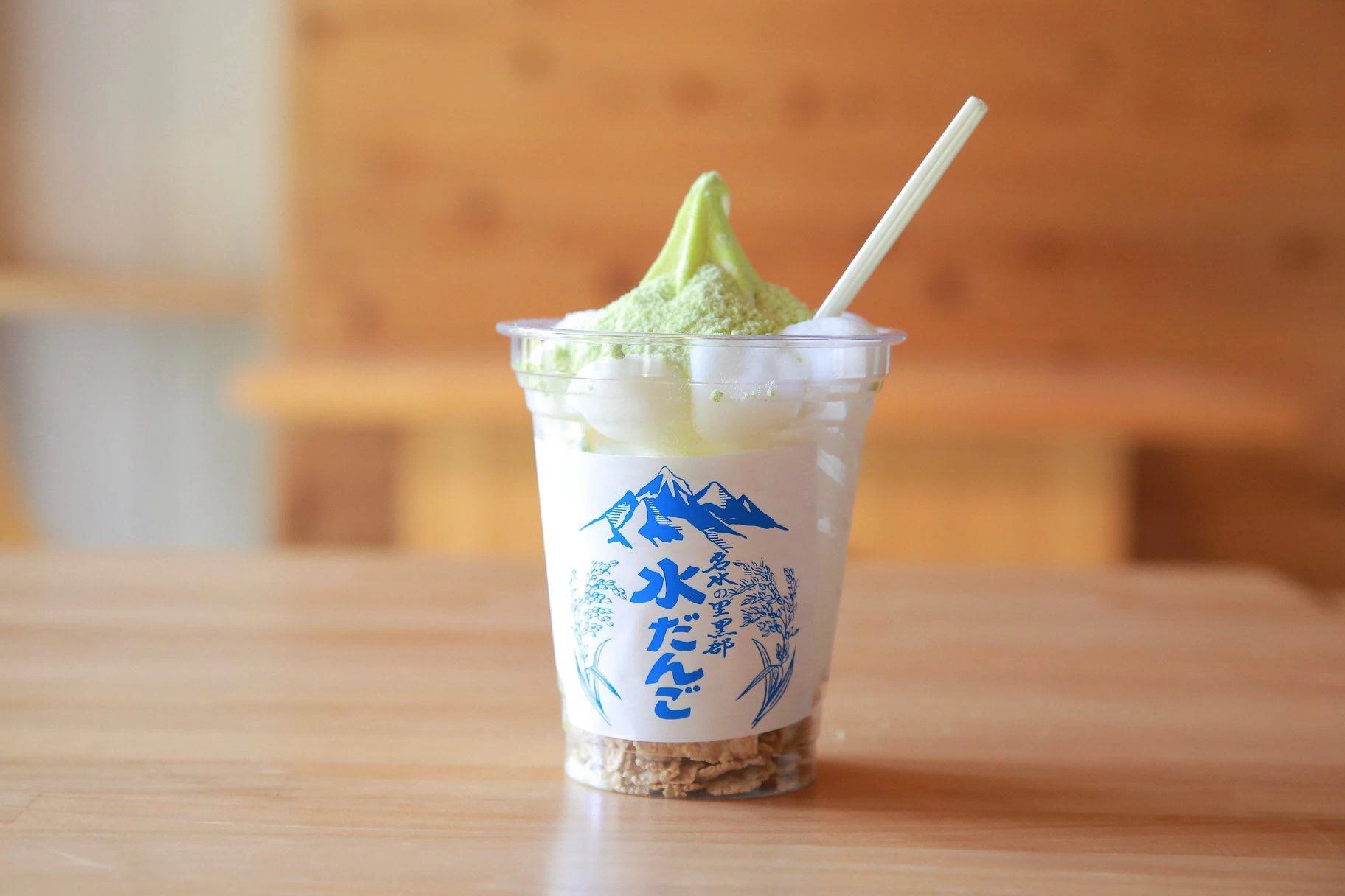 - ★ 水だんごの定番である、鮮やかなエメラルドグリーンの「青きな粉」をまとった姿は、見た目も涼しげでとってもキュート! 並べて写真を撮れば、SNSでも注目の的になること間違いなしです。また、季節限定のフルーツやトッピングを添えたパフェ風のアレンジも展開されており、和洋折衷のモダンなビジュアルが楽しめます
