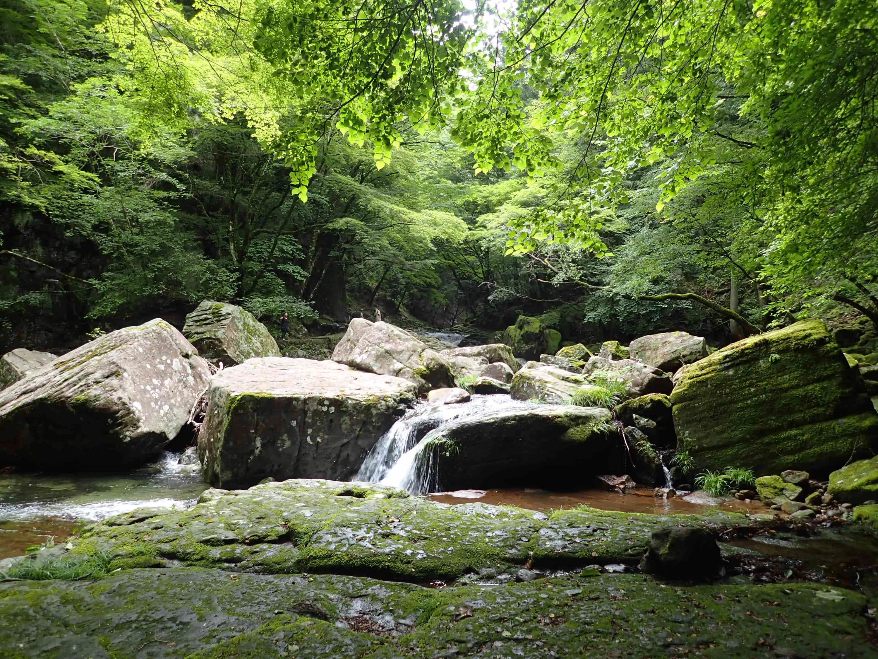 - ★ コケを見ながら歩いていると、時間が経つのはあっという間。帰りのバスの時間も考えると、この辺りで折り返すのがベターです。もし時間に余裕がある場合は、そのまま遊歩道を進むこともできます。百畳岩から先は、渓谷はより幽玄な雰囲気が増し、見られるコケの種類も増えますよ