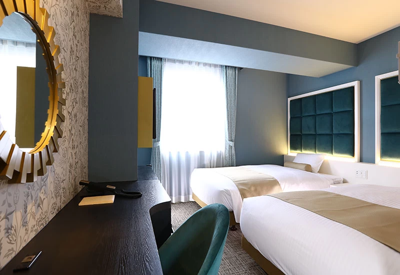 大阪“キタ”のなかでも最大級の歓楽街「阪急東通商店街」に近い好立地。廊下、エレベーターからルームキーまでアール・デコ調に統一され、フィッツジェラルドの代表作「グレート・ギャツビー」に登場する6人をイメージした、6種の多彩な客室が揃う。客室タイプはそれぞれ「ダブルA」「ダブルB」「ツイン」などから選ぶことができる。