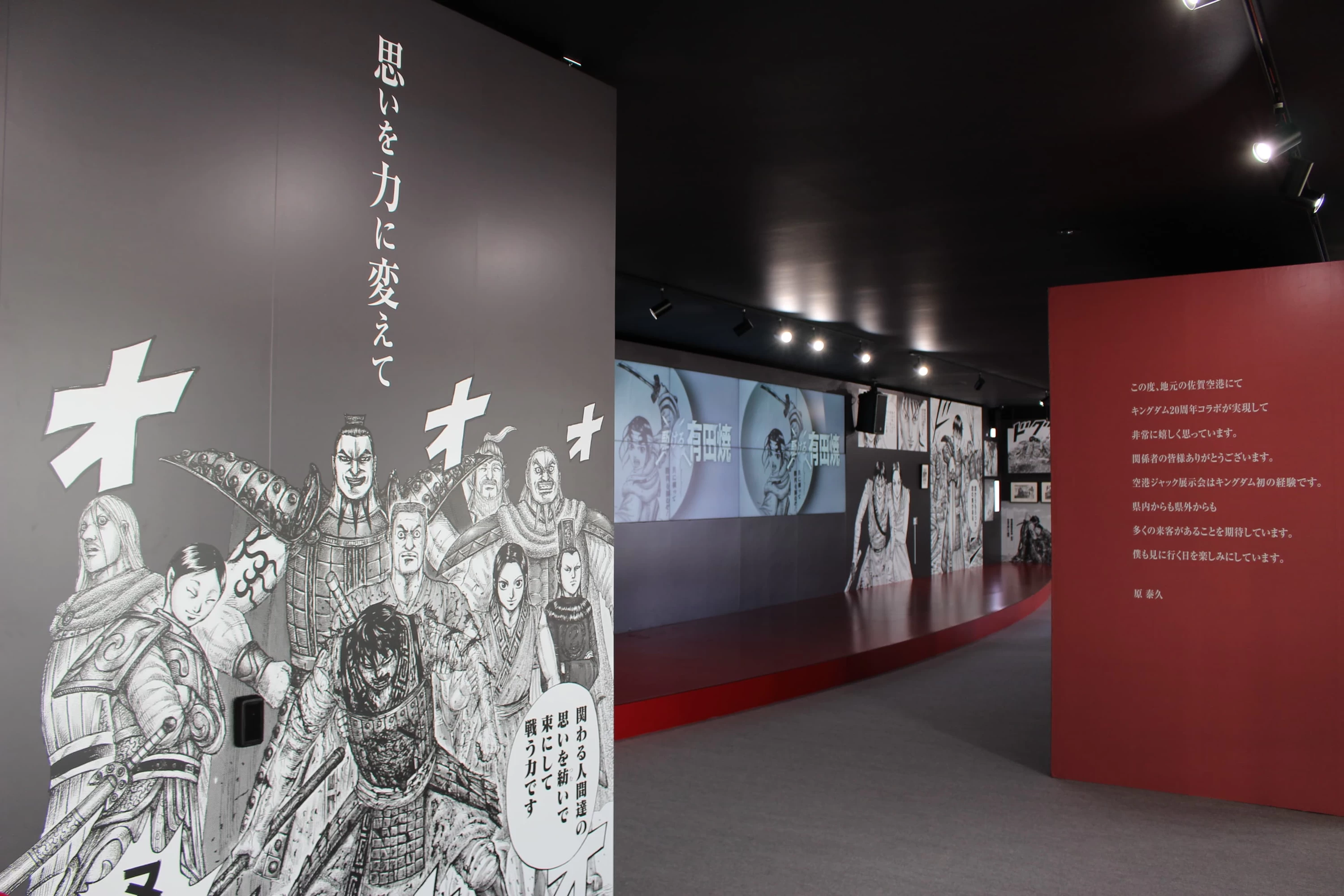 漫画「キングダム」の世界観に包まれた、ファン垂涎の佐賀キングダム空港。名シーンの装飾や巨大パネルなどが空間全体に配された特別展など、足を踏み入れた瞬間から「秦の国」へとタイムスリップしたような高揚感を期間限定で味わえる。旅の出入り口である空港で、気軽に誰でも楽しめるのも魅力。