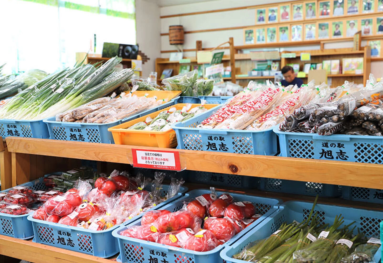- ★ 地元食材を販売している「物産館」では、採れたての野菜やご当地ブランド牛「旭志牛」が並んでおり、そのすべてに生産者の名前が書かれています