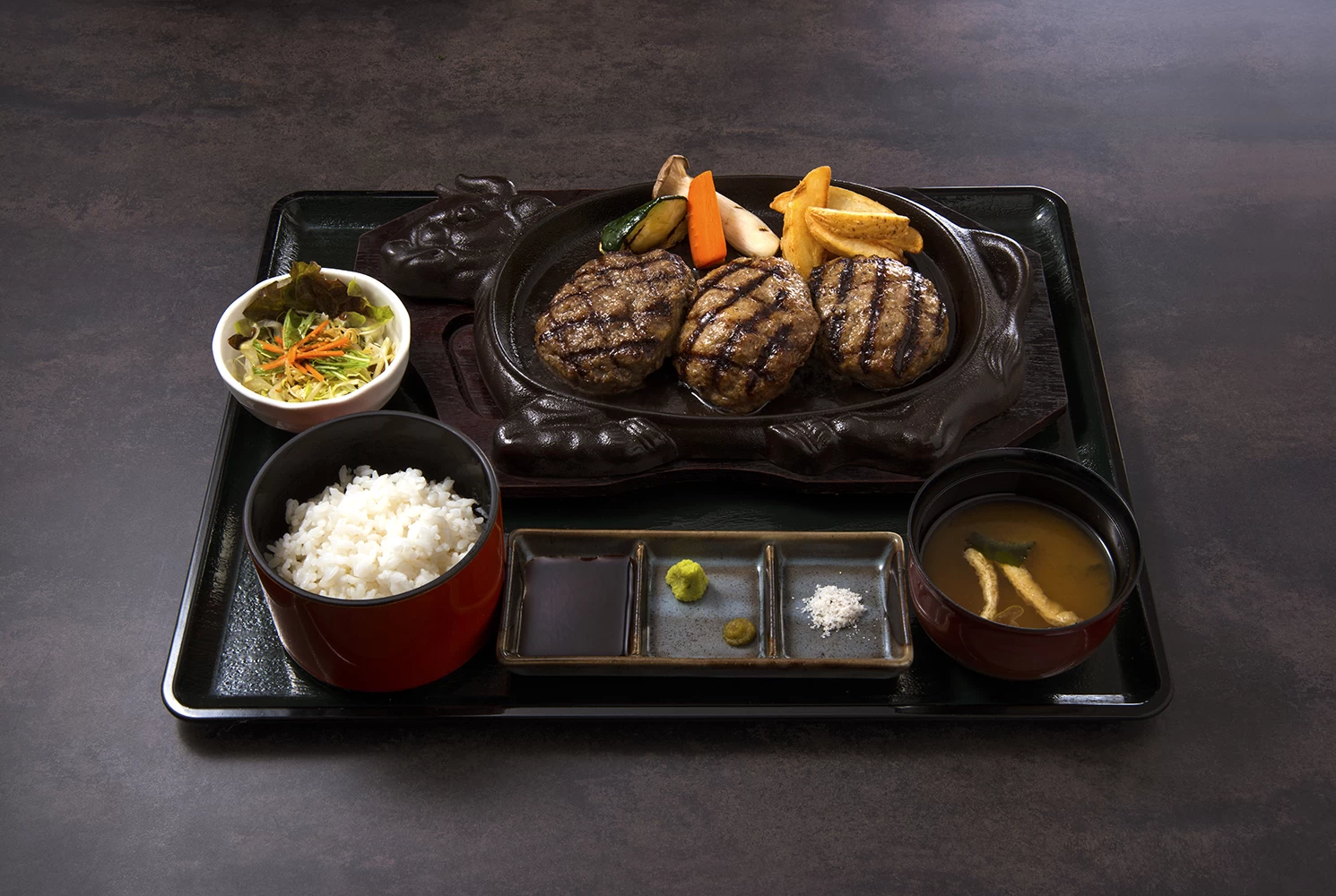 - ★ 厳選した国産牛肉と幻のブランド豚「白金豚」を自社開発した塩麹に漬け込んだ「金格ハンバーグ定食」はランチタイムで人気No.1のメニュー。奥深い味わいなので、まずは何もつけずに召し上がれ