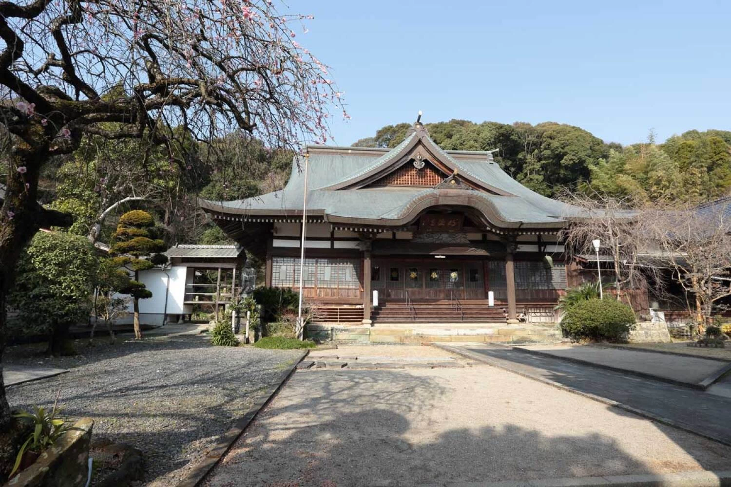 - ★ 豊臣秀吉の時代に天草を支配していた5人の士豪のひとり、天草氏の居城「本渡城」二の丸跡地に建つ寺院。山門の両側に掲げられた漢詩(双聯)からは、荒廃した天草を仏教で再興しようとする意志がうかがえます