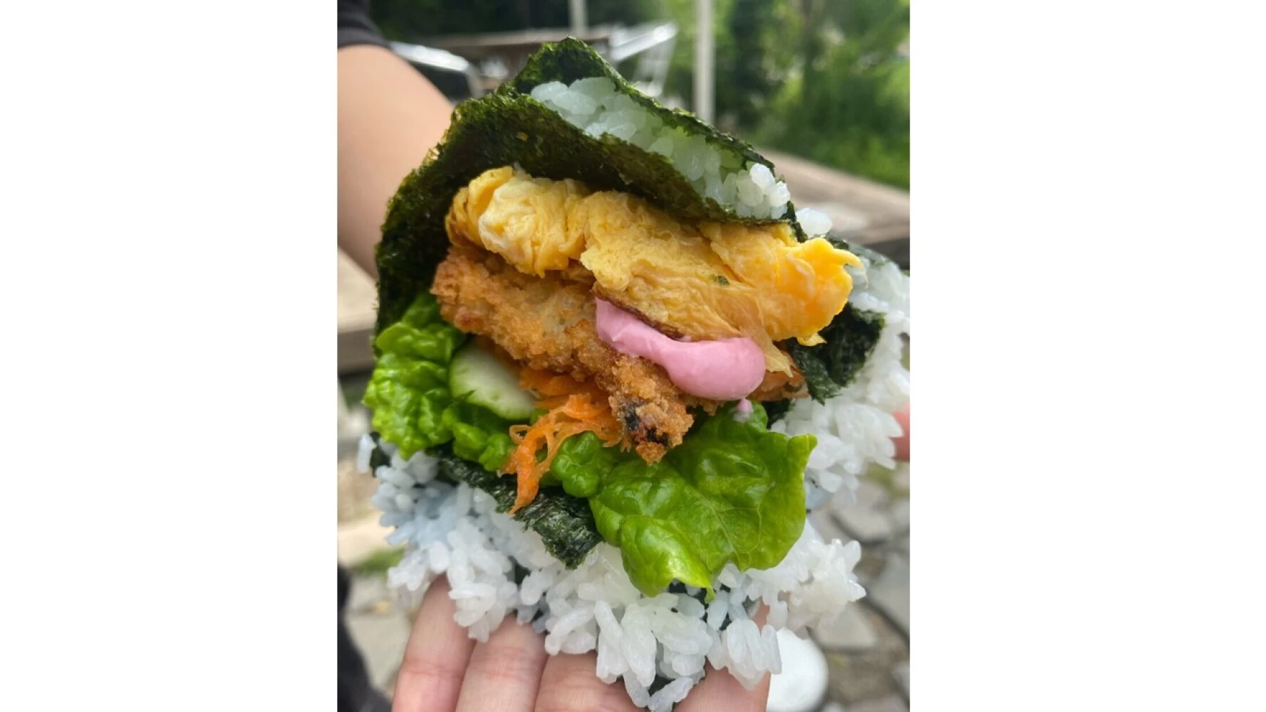 - ★ おすすめはおにぎりサンドの「オレマキ(大あさり入り)」。佐久島の名物・大あさりのフライやレタス、にんじんサラダ、玉子焼、きゅうり、ヴィーガンマヨネーズをご飯にのせて海苔で巻いたものです! 手軽なご当地グルメを堪能しましょう