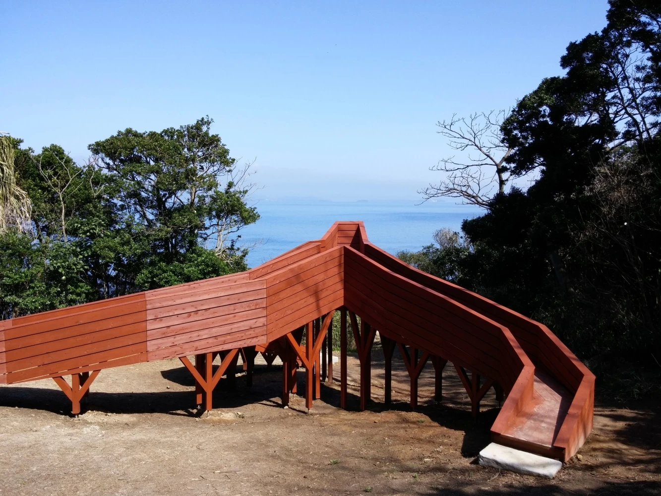 - ★ 海沿いの道から少し階段を上ると、大きな滑り台のようなものが見えてきます。森、海、空をリボンのように結ぶ展望台で、まるで彫刻作品のよう。海を背景に作品の一部を撮影したら、きっとインスタ映え間違いなし