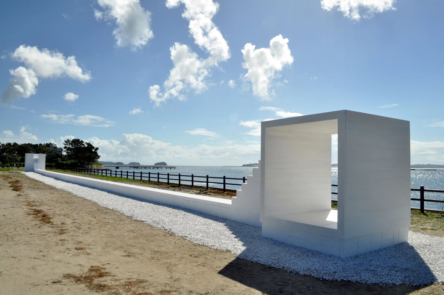 - ★ 木々のトンネルを抜けて渥美半島を見渡す、崖の上にある建築作品です。アポロ11号の月面着陸をイメージした小さな建物からは、たくさんの異なる風景を見ることができます