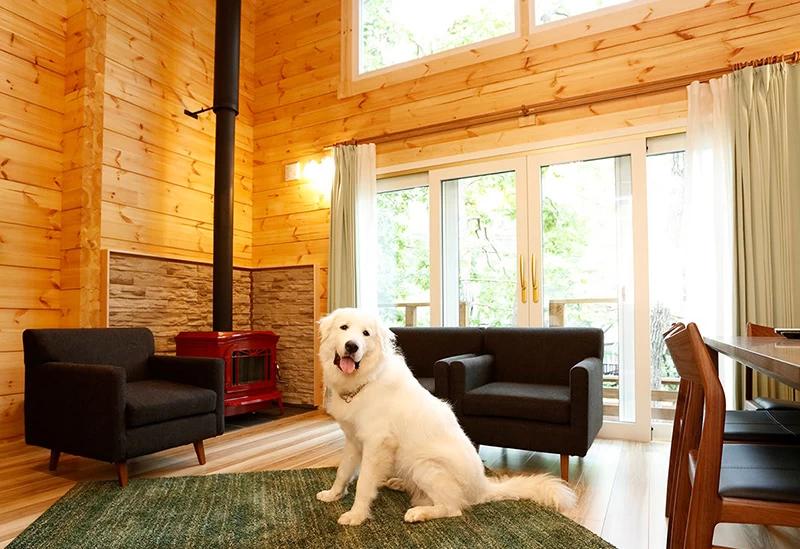 福島県南部、標高約700mに位置する羽鳥湖高原の自然のなかで、愛犬と泊まれるリゾート施設。天然温泉を引く風呂と薪ストーブを設えるラグジュアリーな「ログプレミアム」をはじめとする、全48種のコテージで快適に過ごせるほか、プライベートサウナやドッグランが付いたキャビンでグランピング体験もできる。全室Wi-Fi完備。