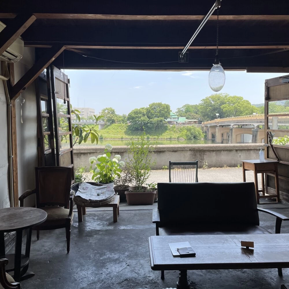 旭川沿いにある築約70年の倉庫をリノベーションしたカフェ。レトロな空間で日替わりごはんや自家製ケーキなど、旬の食材を使ったやさしい味わいの料理が楽しめる。1階にはソファ席と読書スペース、2階には畳のお部屋を用意。
