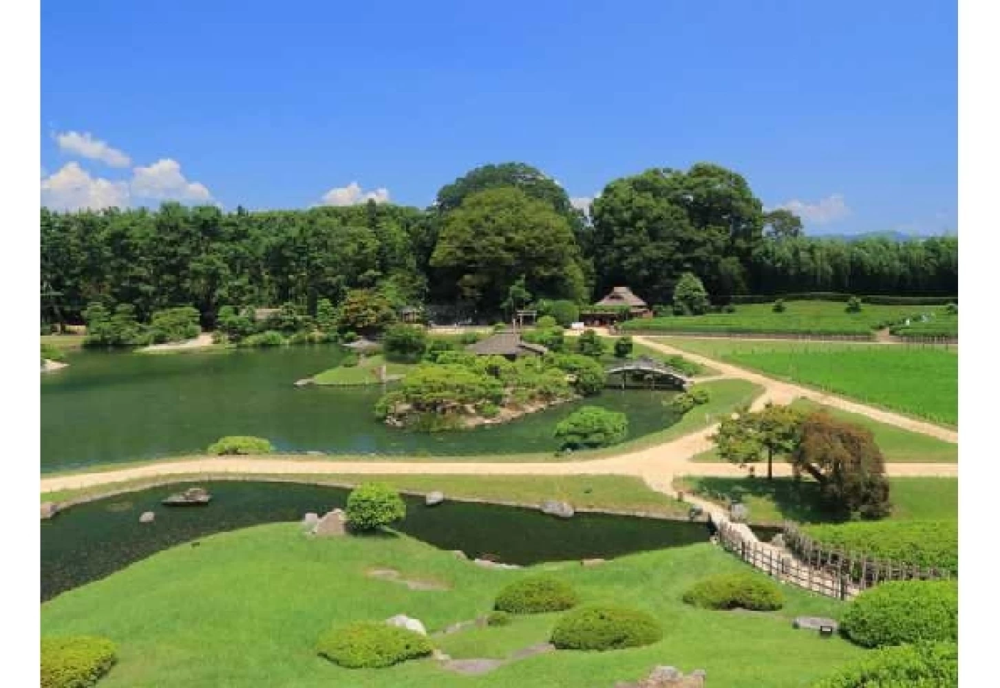 元禄13(1700)年に岡山藩主池田綱政の命によって築庭。水戸の偕楽園、金沢の兼六園と並ぶ日本三名園の一つで、国の特別名勝に指定されている。四季折々の花々も美しい。ミシュラン・グリーンガイド・ジャポンで三つ星評価を得ており、海外からの人気も高い。