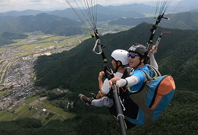 兵庫県丹波市にある「丹波パラグライダースクール」では、インストラクターのサポートのもと、初心者でも気軽にパラグライダー体験ができる。少人数制で時間調整もしやすく、丘から走って浮かび上がる浮遊体験や、山の上から高く飛ぶタンデムフライトなど一人ひとりに合わせた体験が可能。JR市島駅からの送迎も行っている。