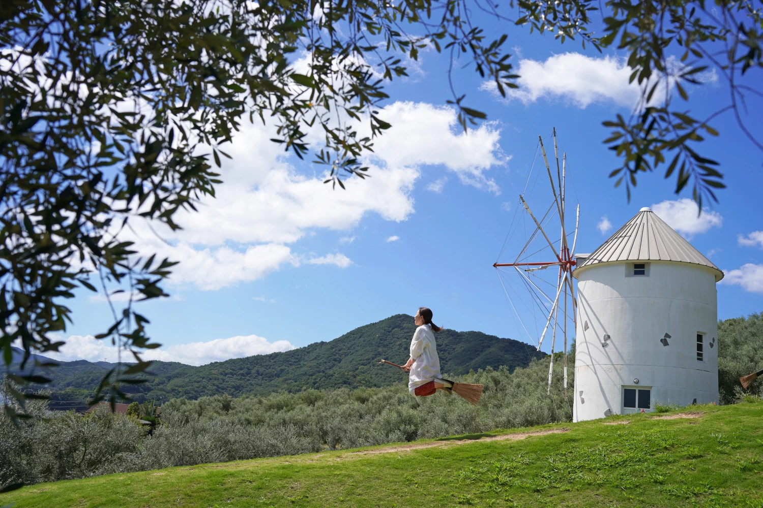 - ★ 撮影用ほうきのレンタルは無料。「ギリシャ風車」をはじめ、園内には撮影スポットがいっぱいあるので、ついつい撮りすぎちゃいます。土日祝日はほうきを借りるのに長蛇の列になることもあるので、時間に余裕を持っていきましょう
