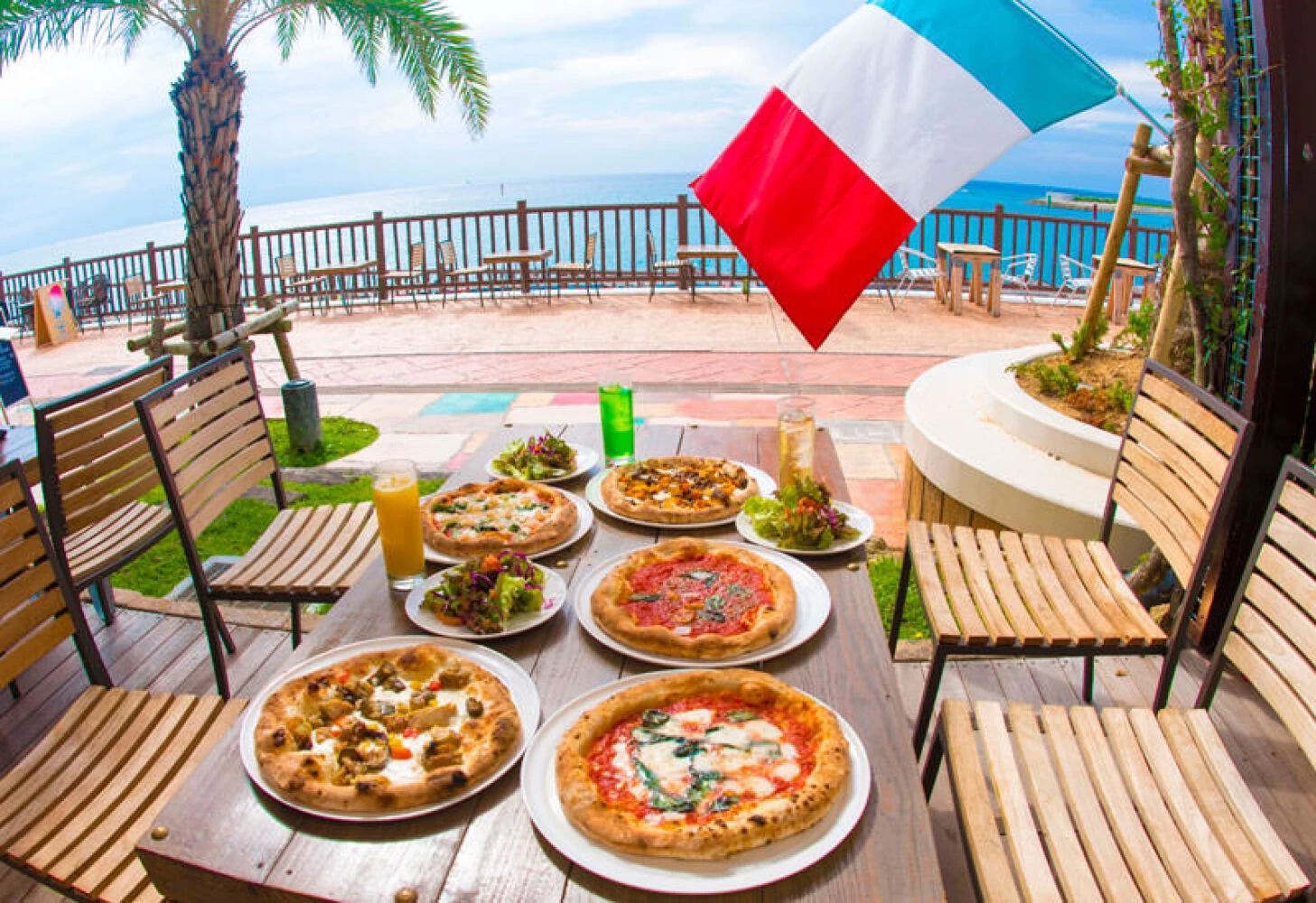 美浜アメリカンビレッジの海沿いにあるピッツェリア。テラス席の目の前に海が広がる絶好のロケーションで、素材と伝統製法にこだわった、本格的なナポリピッツァを堪能できる。イタリアの老舗、アクント・マリオ社の薪窯で焼き上げる自慢の生地は、外はカリッと、中はもちもちふわふわ。