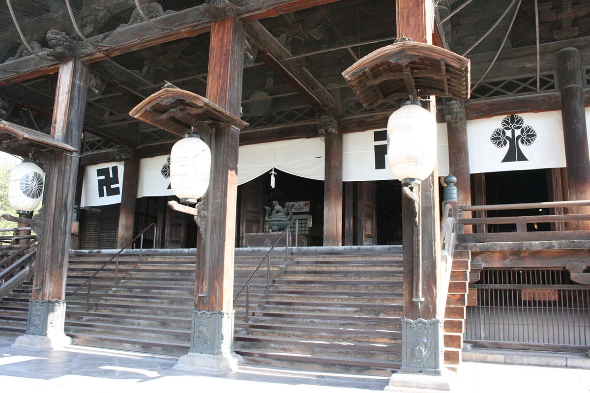 - ① 本堂(内陣券をお求めの上、内陣参拝とお戒壇めぐりで如来様とのご縁を結んでください)