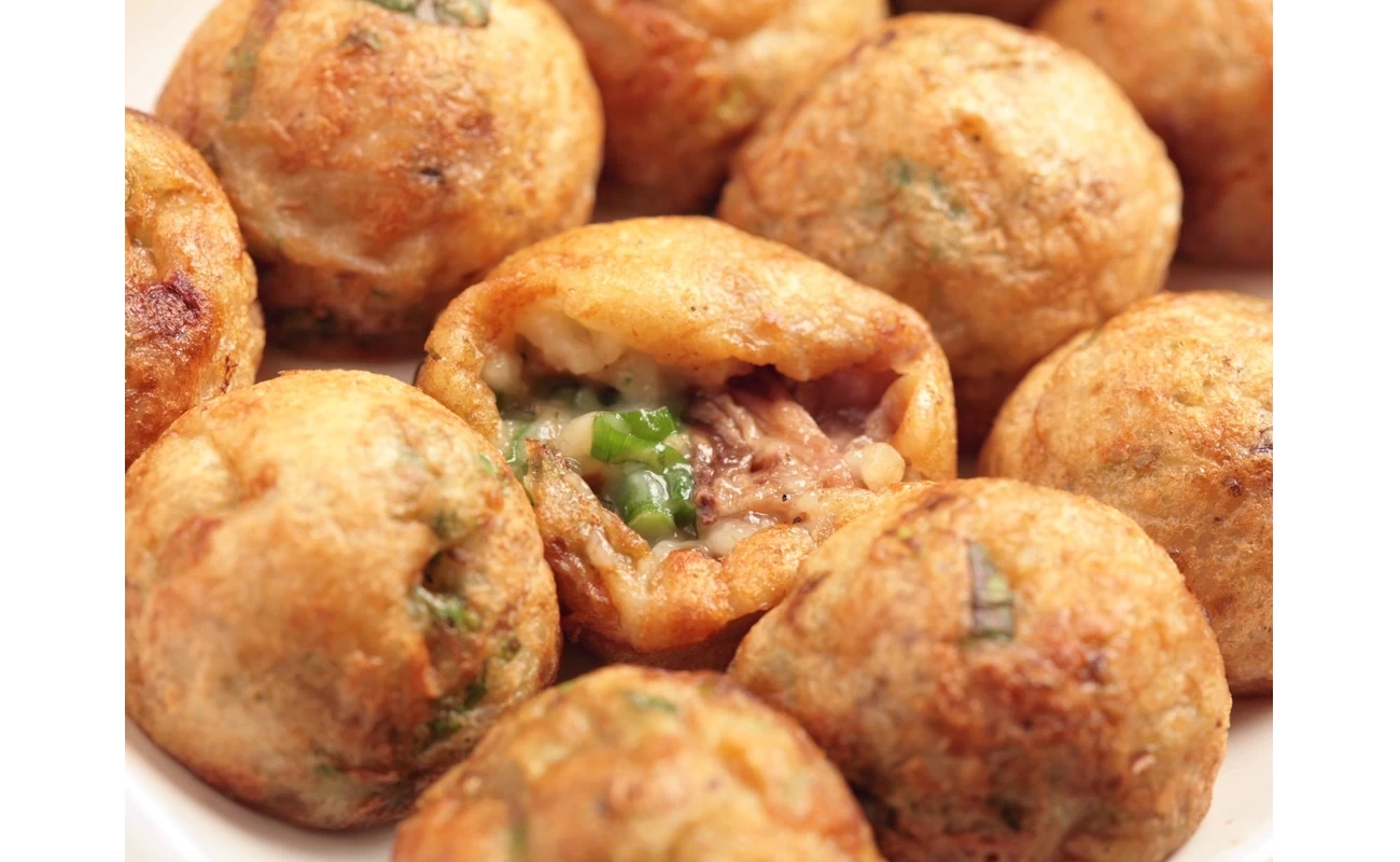 旅のスタート地点、難波駅から徒歩3分ほどで出合えるのが「会津屋 ナンバ店」。“たこ焼き発祥の店”といわれており、“元祖たこ焼き”を味わえるだけでなく、たこ焼きの原型とされる「ラヂオ焼」もいただけるのでチェックしてみましょう。