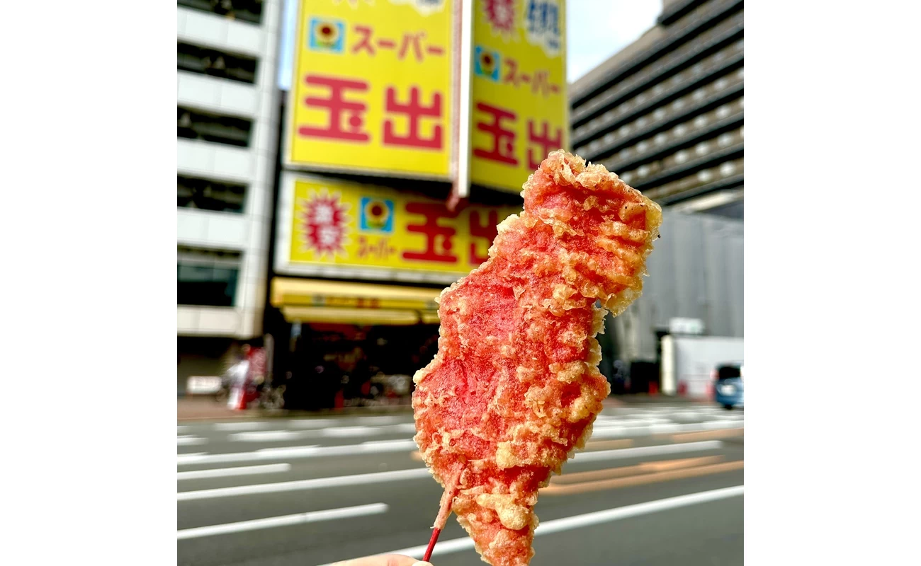 「スーパー玉出」は大阪の激安店として知られる存在で、黄色に赤の文字の看板が遠くからでも目を引きます。おすすめは、恵美須店限定の「たれごはん3兄弟」。天丼・焼き肉・うなぎの“たれ”がかかった味付きご飯で、シンプルながらも人気の高い商品です。大阪の天ぷらの代表格、「紅生姜天」も合わせてトライしてみては?
