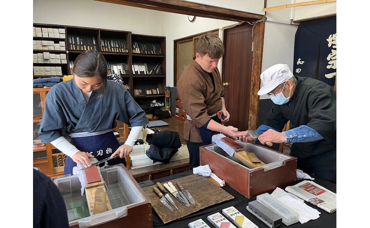お次は、600年の歴史を持つ「堺打刃物」を扱う「株式会社 和田商店」へ。こちらでは、昔からの技術を使った名入りのマイ包丁を作ることができます。大阪の旅の思い出の品として、長く愛用できること間違いなし!