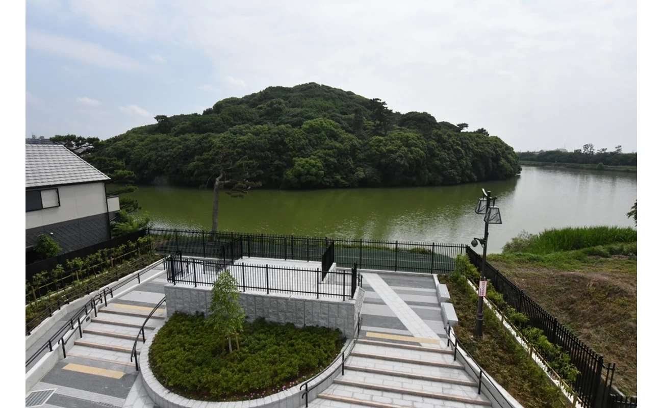 「仁徳天皇陵古墳」に次いで大きな「履中(りちゅう)天皇陵古墳」には、古墳の後円部側から展望を堪能できるスペースがあります。お濠と緑に包まれた古墳のフォトスポットとしても人気。大きな古墳にここまで近づける場所はなかなかないので、ぜひ訪れてみましょう。