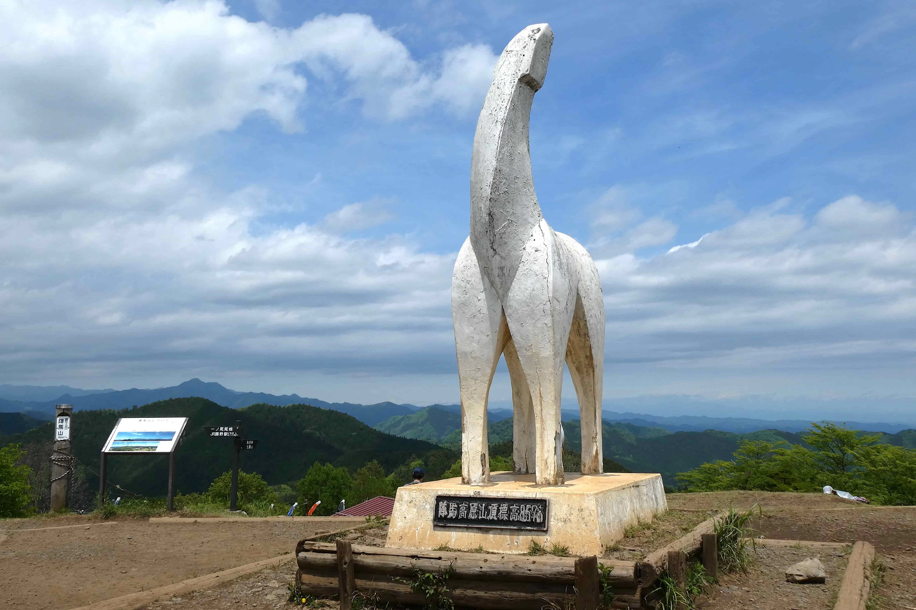 歩き足りない方は奥高尾縦走路へ。小仏城山や景信山をつなぎ、陣馬山まで続く尾根道は距離があるものの、標高差は少なく歩きやすいルートです。小仏城山の山頂で味わう名物のなめこ汁も楽しみのひとつ。高尾山から4〜5時間ほどで陣馬山に到着したら、白馬像の前で記念写真を。下山後は地元で長く愛される陣馬そばをいただきましょう。