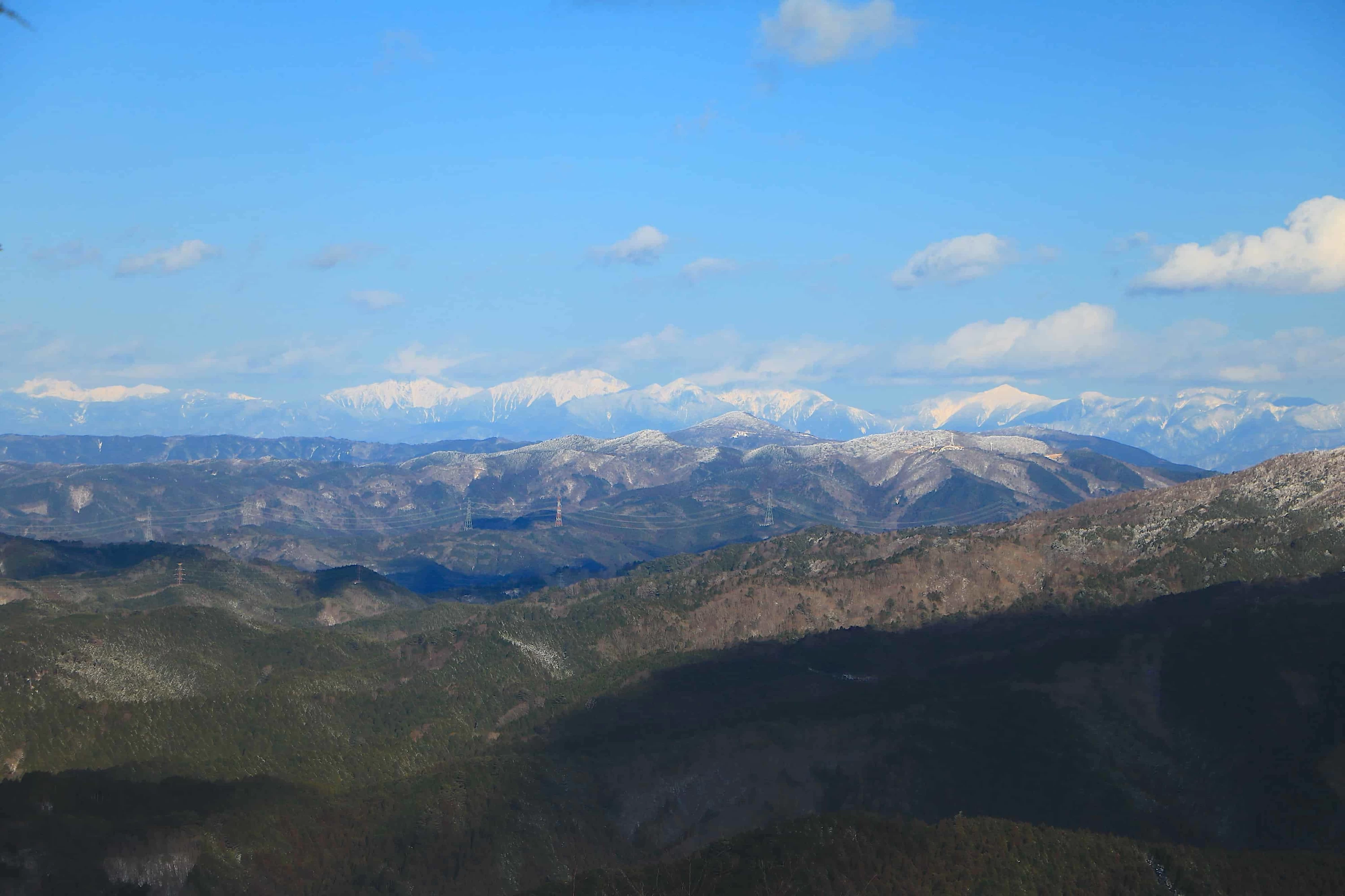 山頂へ到達すると、南アルプスや御嶽山などの日本屈指の高山に加え、三河山地の山々まで見渡せる抜群のパノラマが待っています。往復2時間の山でありながら、これほどスケールの大きい絶景を味わえる雪山は、なかなかありません。