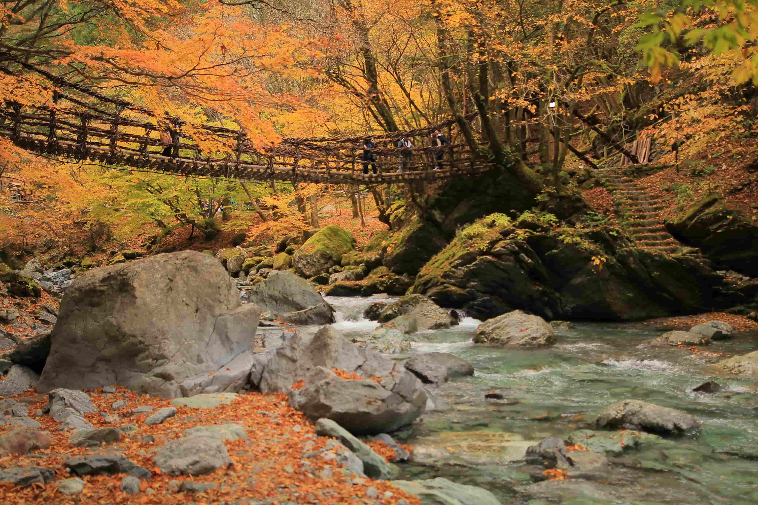 下山後は、日本三大秘境に選ばれる「祖谷(いや)」へ足を延ばします。祖谷渓温泉で疲れを癒やし、奥祖谷二重かずら橋や大歩危峡(おおぼけきょう)の遊覧船でダイナミックな渓谷美を体感。山と秘境、ふたつの自然を巡ることで、四国の新たな表情に出会えますよ。