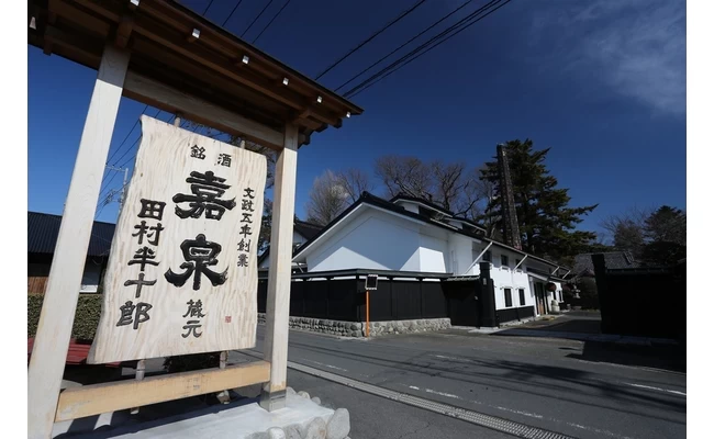 途中休憩を挟みながら玉川上水の遊歩道を歩き進め、約40分でちょうど散策路の中間地点となる「田村酒造場」に到着。1822(文政5)年創業の老舗で、「手寧に造って、丁寧に売る」にこだわる酒蔵です。代表銘柄「嘉泉(かせん)」をはじめとする、極上の日本酒の数々は酒蔵でも購入可能。福生市観光の思い出として、お土産に購入してみてはいかが?