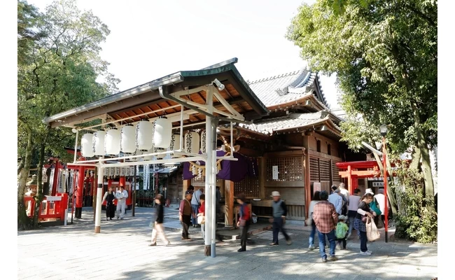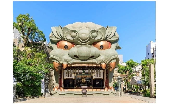 最初に訪れるのは、なんば駅から徒歩約5分の「難波八阪神社」です。巨大な獅子をかたどったユニークな「獅子殿」がSNSでも話題に。その大きな口は、「邪気を呑み込み、勝運(商運)を呼び込む」といわれており、全国から勝利祈願をする参拝客が足を運びます。最近では、推し活のためのライブチケット当選を祈願する方も多いそう。参拝のあとは、インパクトのある獅子殿の前で記念撮影をしましょう。